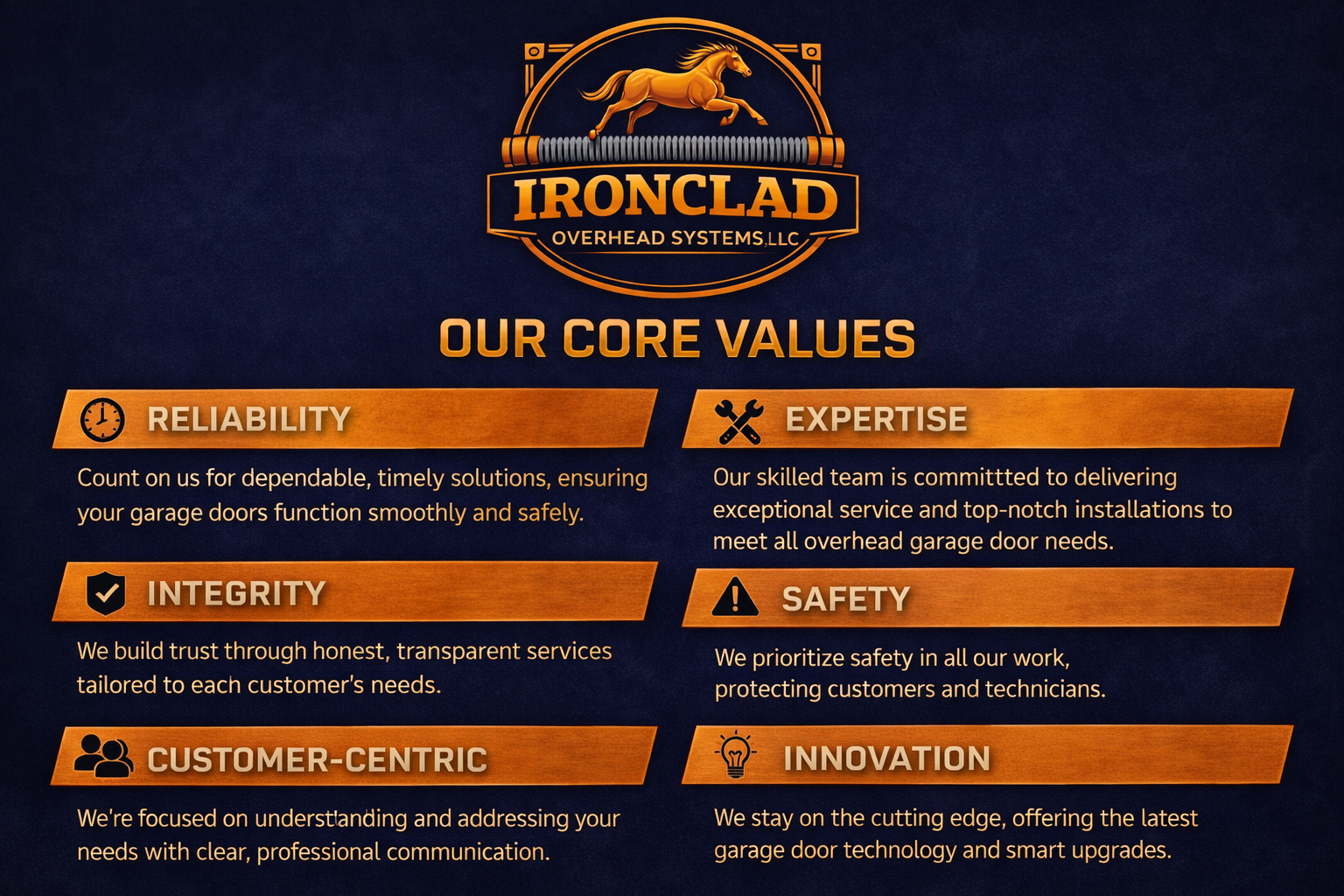 Core Values 〰️ Reliability 〰️ Integrity 〰️ Customer Centric 〰️ Expertise 〰️ Safety 〰️ Innovation 〰️ Core Values 〰️ Reliability 〰️ Integrity 〰️ Customer Centric 〰️ Expertise 〰️ Safety 〰️ Innovation 〰️ Core Values 〰️ Reliability 〰️ Integrity 〰️ Customer Centric 〰️ Expertise 〰️ Safety 〰️ Innovation 〰️ Why Ironclad Overhead is your first choice in Garage door repairs, installs and maintenance needs in the Saint Cloud, MN and surrounding areas!